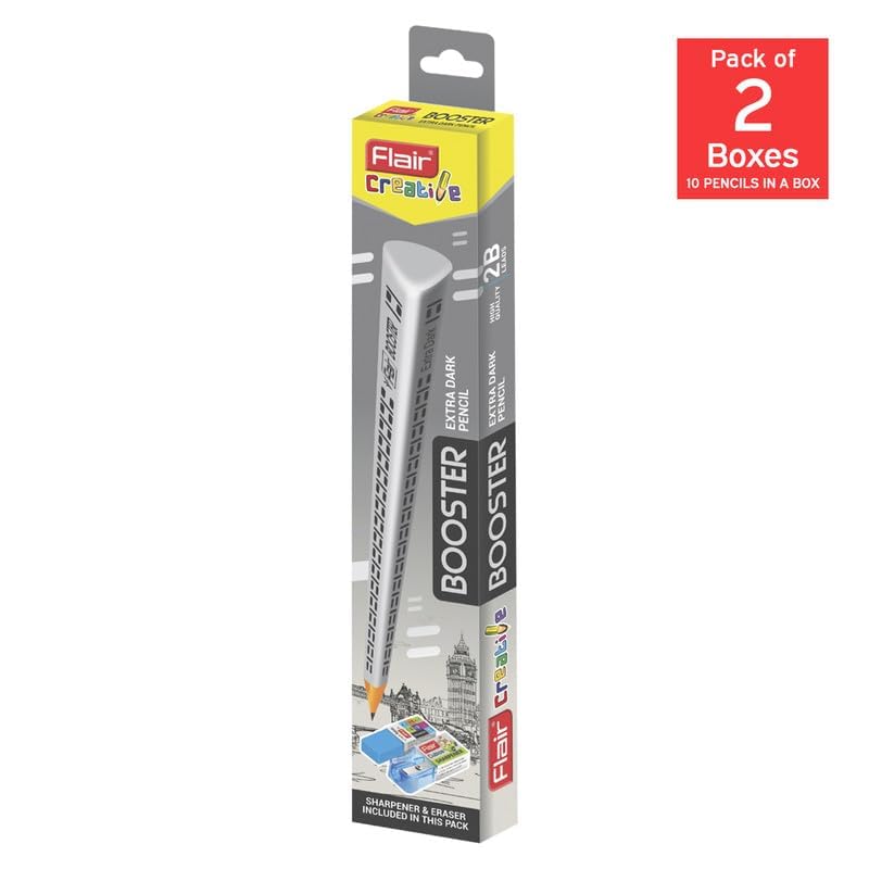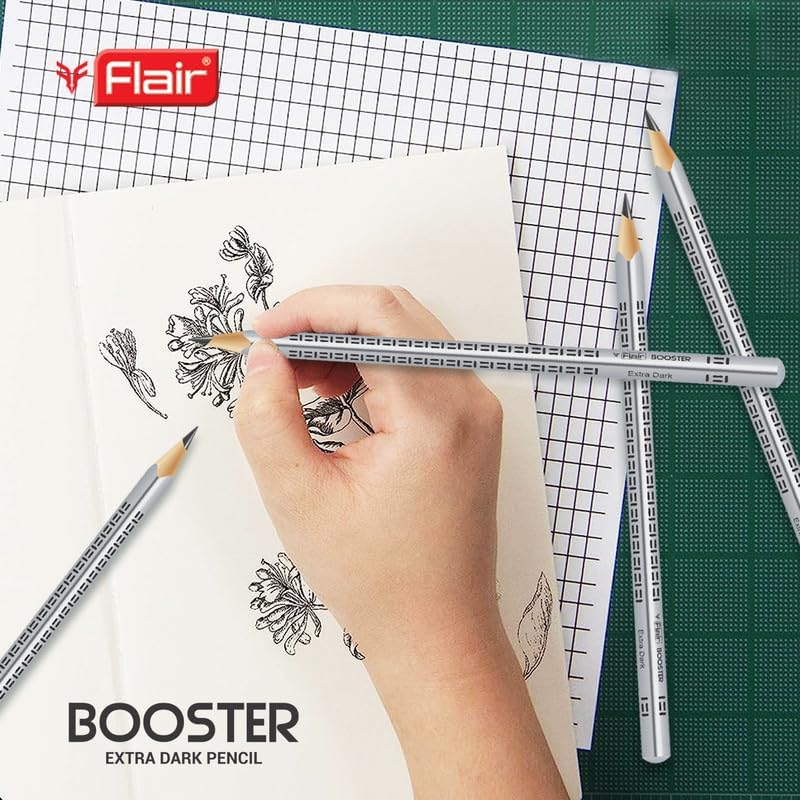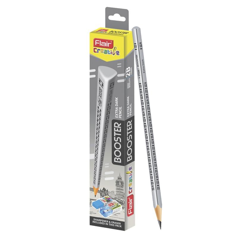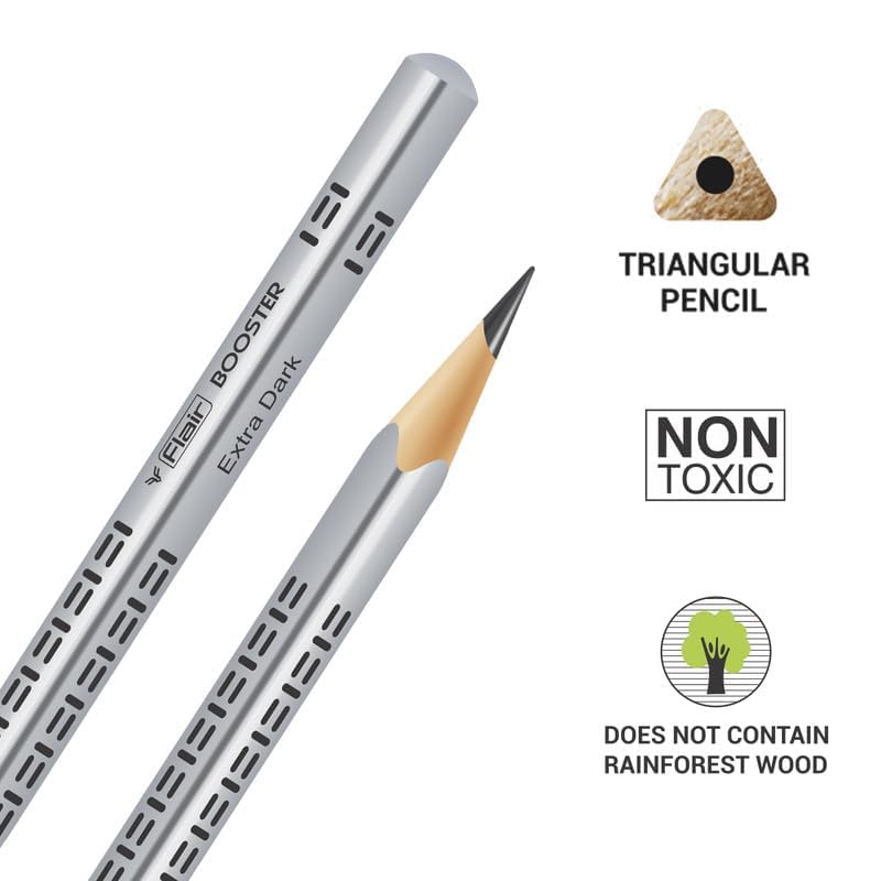 Make writing and drawing easier with the FLAIR Creative Series Graphite Triangular Pencil Set with Sharpener & Eraser, a complete stationery solution designed for school, college and creative use. This set includes high-quality 2B graphite pencils shaped in a triangular body that helps you maintain a comfortable grip while you write or sketch. The triangular design also keeps pencils from rolling off desks, making them convenient to use in classrooms and study spaces.