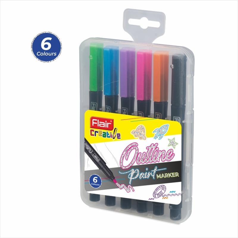 FLAIR Creative Series Outline Metallic Paint Marker Pens | Double Line Drawing Pens For Scrapbook, DIY Photo Album, Painting, Greeting Cards, Glitter Doodle, Rock & Glass Painting, Fabric | 6 Shades
